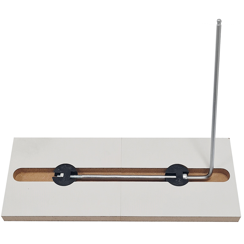 6-Kant Bolzen Stahl verzinkt, Gehäuse Polyamid schwarz für stabile Verbindungen von Arbeitsplatten, mit grossem Toleranzausgleich und grosser Spannweite, einsetzbar ab Plattenstärke 10 mm