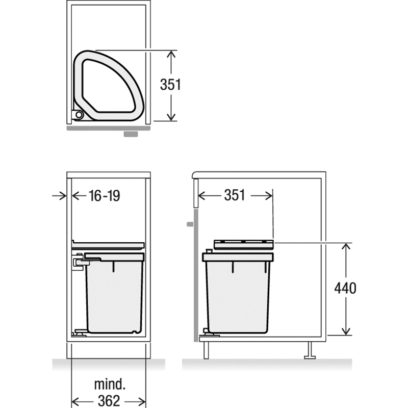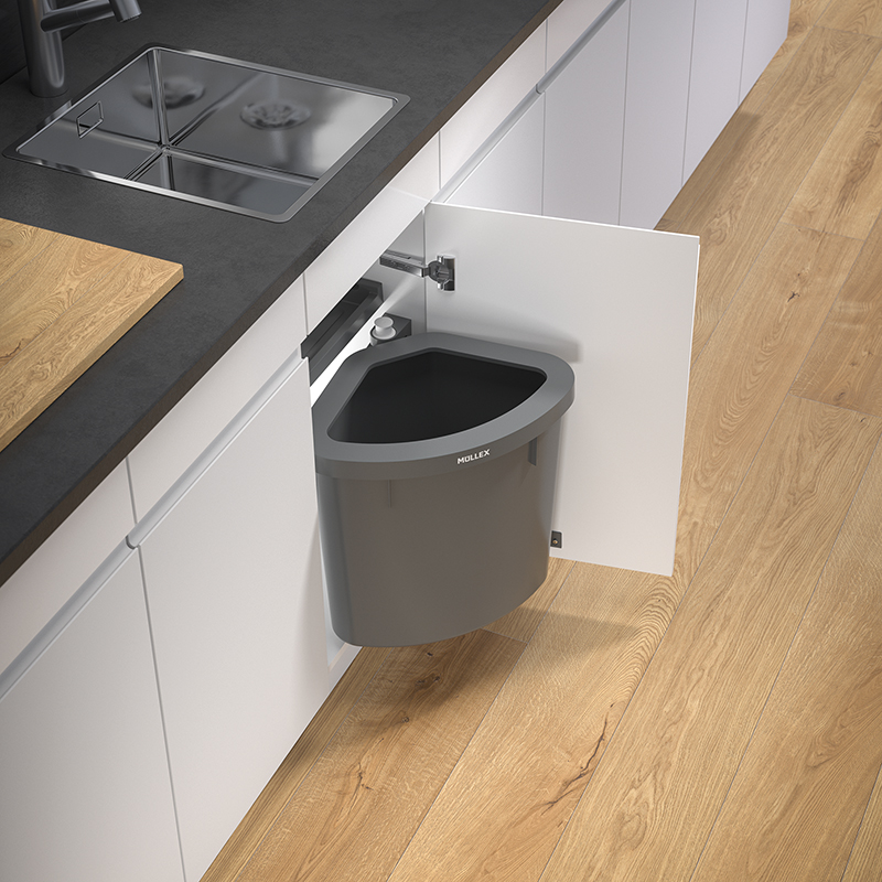 eignet sich besonders für kleine Küchenkorpusse und kann ab einer Breite von 400 mm verwendet werden, der Hauptbehälter ist ideal für die Nutzung von 35 oder zwei 17 Liter Abfallsäcken, im Set enthalten ist zudem ein praktischer Ablagedeckel, der zusätzlichen Stauraum für Küchenutensilien bietet