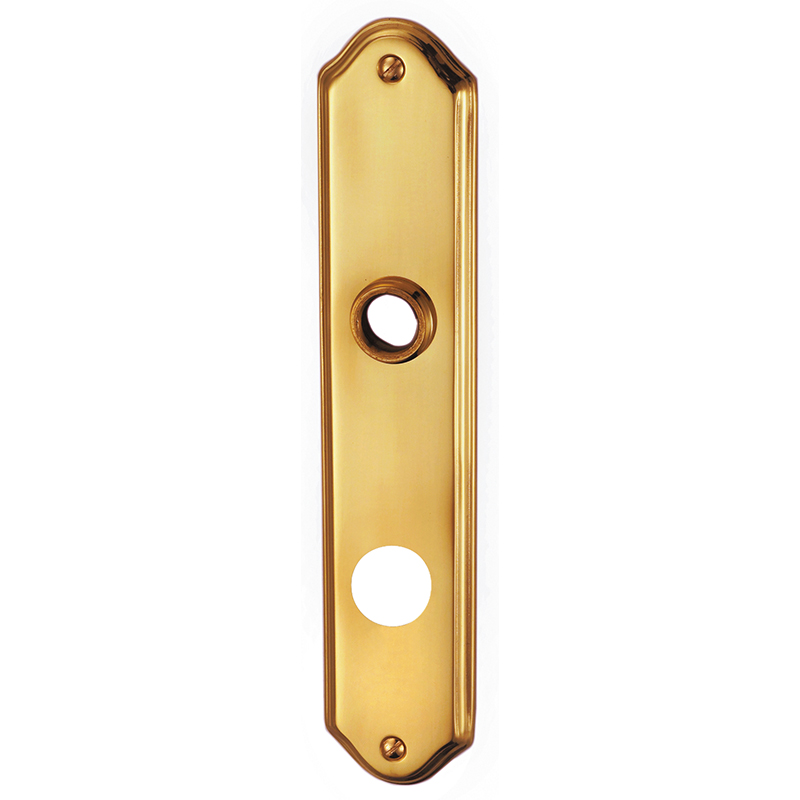 Messing poliert, Drückerführung 18 mm, oberes Schraubenloch bis Mitte Drückerführung 90 mm, mit Schrauben