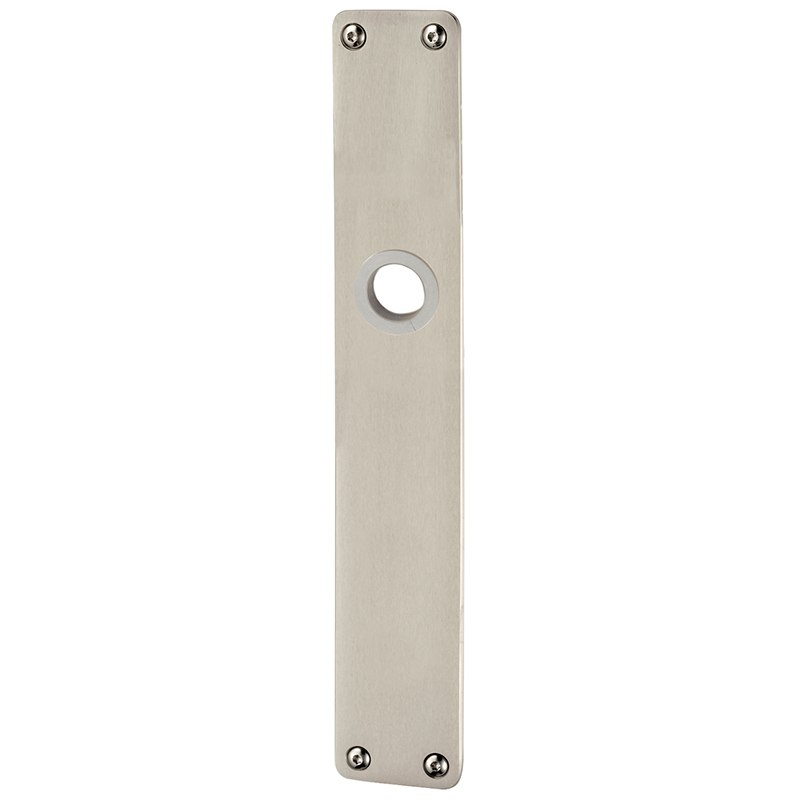 Messing matt vernickelt, Drückerführung 16 mm, oberes Schraubenloch bis Mitte Drückerführung 70 mm, mit Schrauben