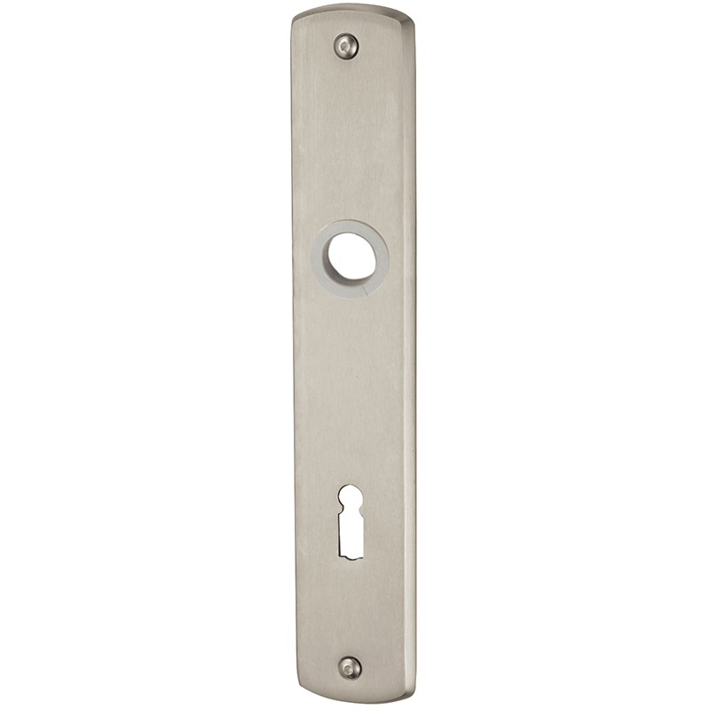 Messing matt vernickelt, Drückerführung 16 mm, oberes Schraubenloch bis Mitte Drückerführung 60 mm, mit Schrauben