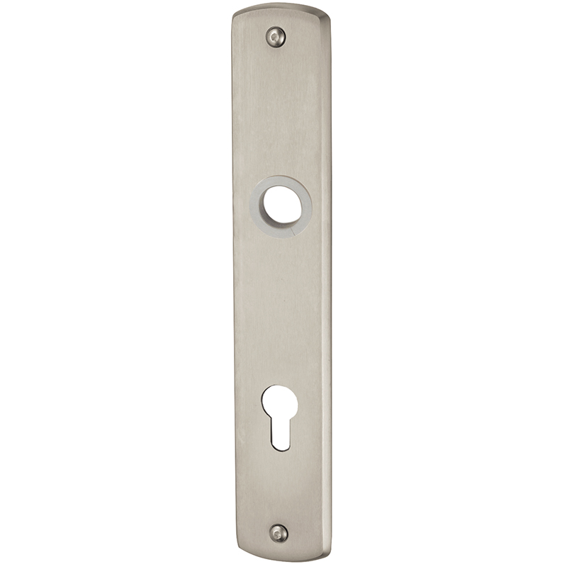 Messing matt vernickelt, Drückerführung 16 mm, oberes Schraubenloch bis Mitte Drückerführung 60 mm, mit Schrauben