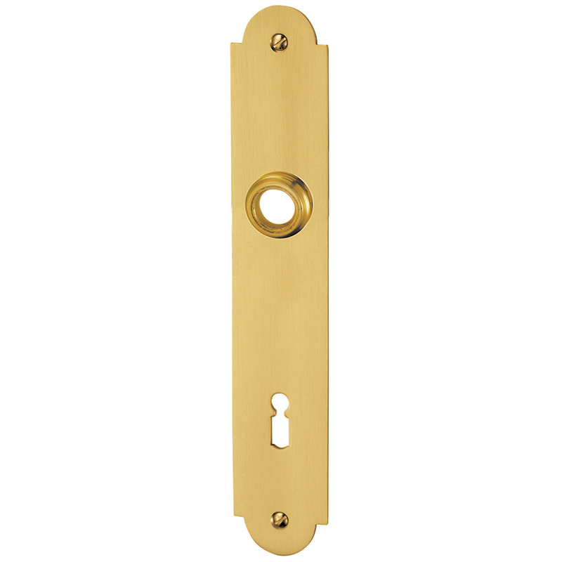 Messing matt gebürstet, Drückerführung 16 mm, oberes Schraubenloch bis Mitte Drückerführung 62 mm, mit Schrauben