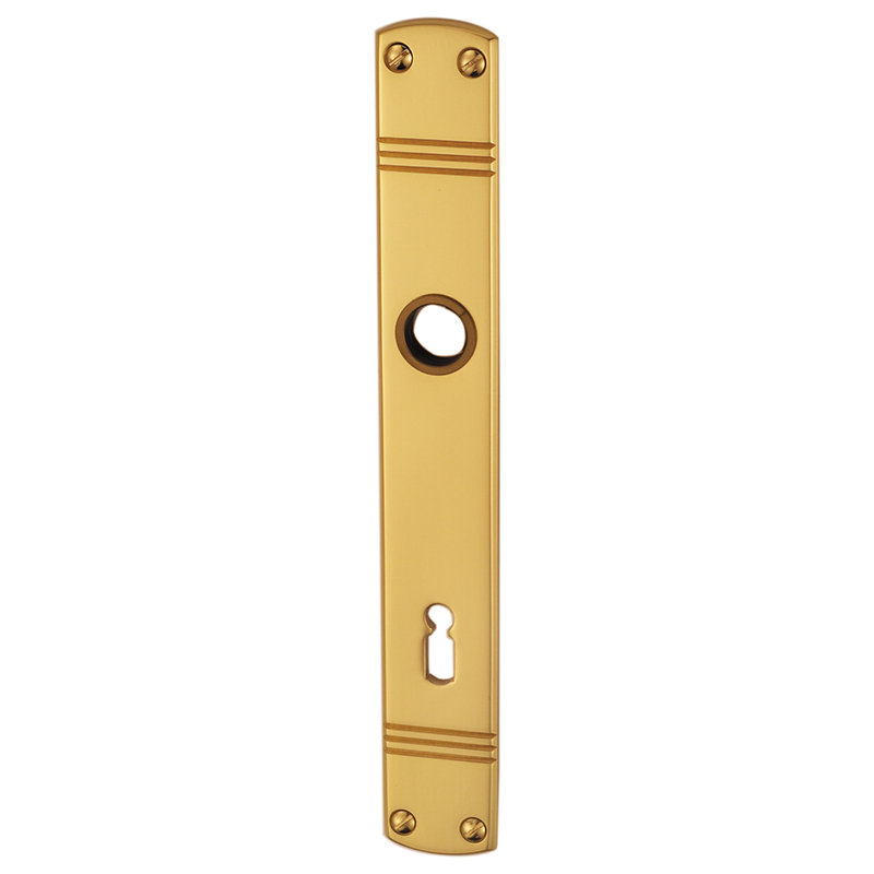 Messing poliert, Drückerführung 16 mm, oberes Schraubenloch bis Mitte Drückerführung 70 mm, mit Schrauben