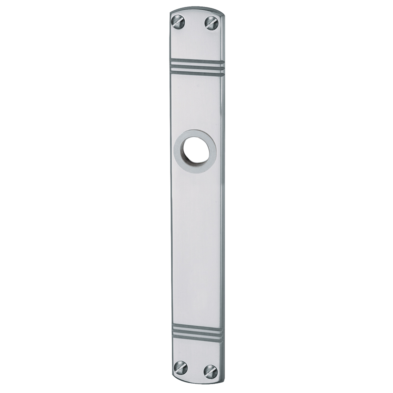 Messing poliert verchromt, Drückerführung 16 mm, oberes Schraubenloch bis Mitte Drückerführung 70 mm, mit Schrauben