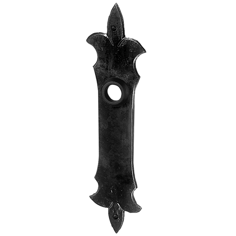 Eisen naturblank (geringe Korrosionsbeständigkeit), Distanz Drückerloch - oberes Schraubenloch 56 mm, Schrauben im Lieferumfang enthalten