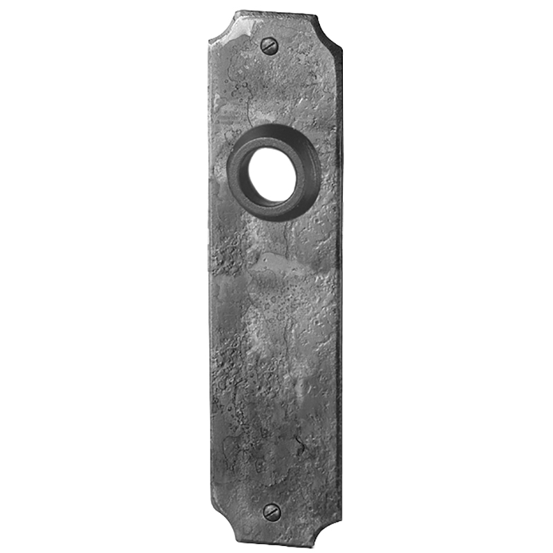 Eisen naturblank (geringe Korrosionsbeständigkeit), Distanz Drückerloch - oberes Schraubenloch 40 mm, Schrauben im Lieferumfang enthalten