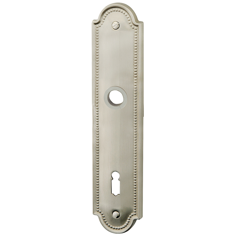 Messing matt vernickelt, Drückerführung 16 mm, oberes Schraubenloch bis Mitte Drückerführung 68 mm, mit Schrauben