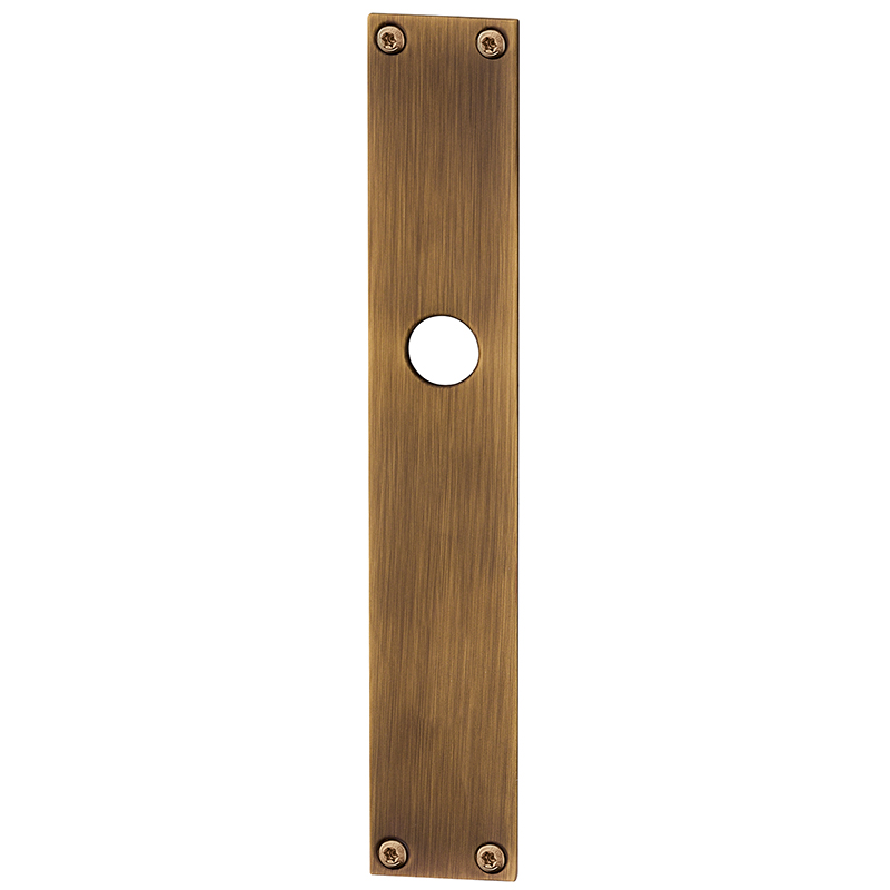 Messing brüniert, Drückerführung 16 mm, oberes Schraubenloch bis Mitte Drückerführung 81 mm, mit Schrauben