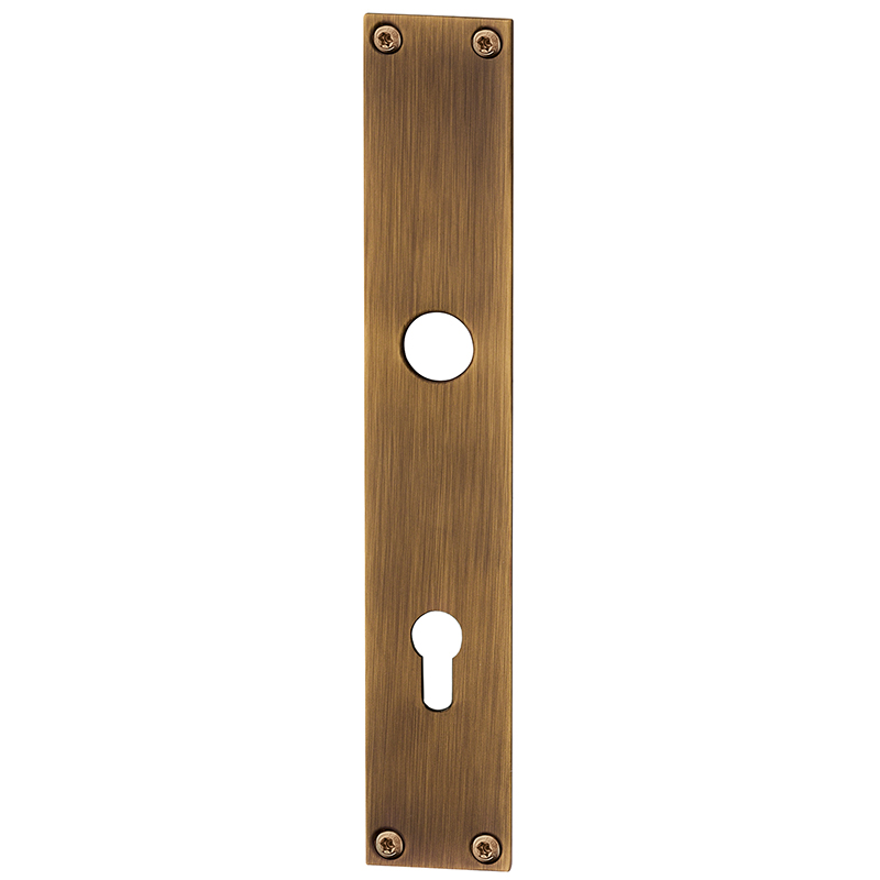 Messing brüniert, Drückerführung 16 mm, oberes Schraubenloch bis Mitte Drückerführung 81 mm, mit Schrauben