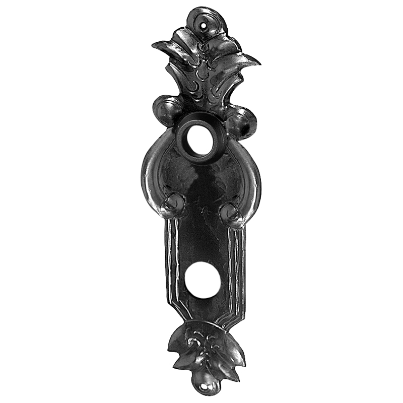 Eisen naturblank (geringe Korrosionsbeständigkeit), Distanz Drückerloch - oberes Schraubenloch 58 mm, Schrauben im Lieferumfang enthalten