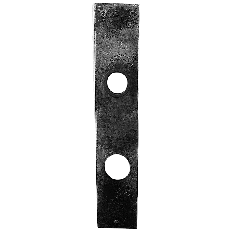 Schmiedeisen naturblank matt lackiert, Drückerführung 18 mm, oberes Schraubenloch bis Mitte Drückerführung 66 mm, mit Schrauben