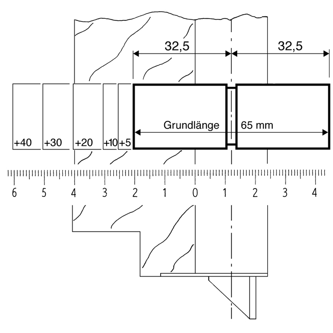 Tabelle zur Bestimmung der Zylinderlängen bei Kastenschlössern