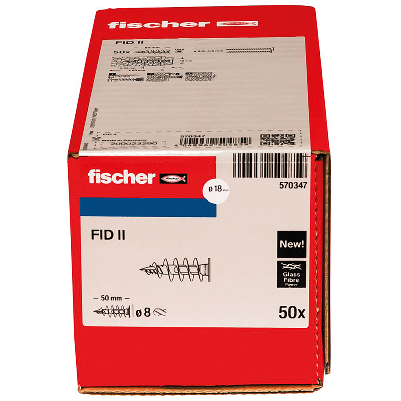 eignet sich für die Befestigung von leichten Anbauteilen an Wärmedämmverbundsystemen, dank der kombinierten Zentrier-, Fräs- und Schneidefunktion der Dübelspitze kann der FID II punktgenau eingeschraubt werden, der geringe Kopfdurchmesser in Kombination mit den Unterkopffrästaschen des Dübels sorgen für ein perfekt verdecktes und oberflächenbündiges Setzbild, besonders geeignet ist der FID II zur Befestigung von leichten Anbauteilen wie Aussenlampen, Hausnummern oder Türklingeln am WDVS