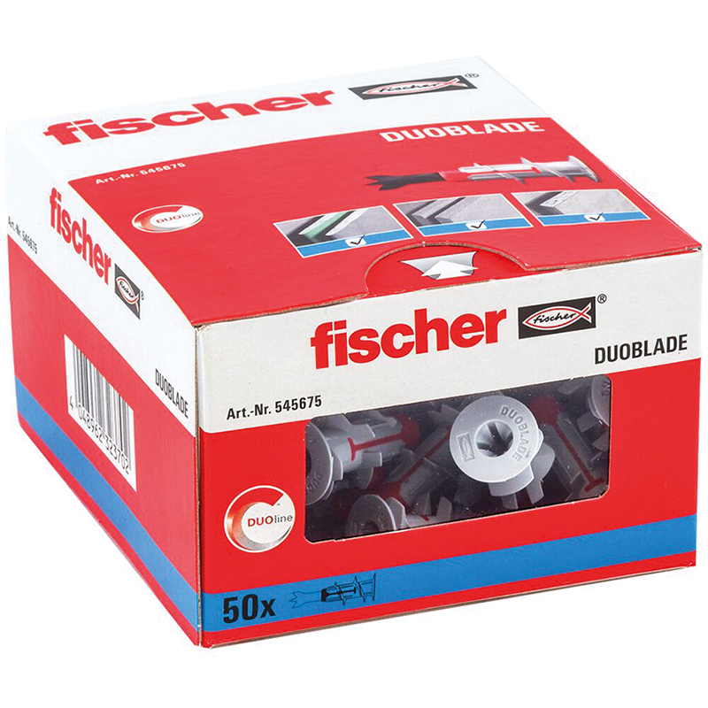 der DuoBlade ist Teil der innovativen DuoLine und besteht somit aus mehreren Komponenten für bestmögliche Performance, die selbstbohrende Bohrspitze ermöglicht einen sauberen und effektiven Bohrvorgang, der Dübel wird in der Vorsteckmontage mit einem Akku-Schrauber oder Schraubendreher oberflächenbündig in die Gipskartonplatten eingedreht, der fischer DuoBlade ist abgestimmt auf Holz-, Blech- und Spanplattenschrauben von 4 bis 5 mm Stärke sowie unterschiedlichen Haken und Ösen, dadurch ist er universell geeignet, um z.B. Rauchmelder, Vorhangstangen und Jalousien sicher und schnell zu befestigen, der DuoBlade wird mit einem herkömmlichen PZ 2 Antrieb in die Gipskartonplatte gesetzt, es wird kein Sonder-Setzgerät benötigt