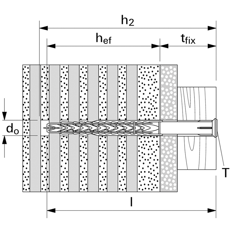 der Langschaftdübel SXRL mit bis zu drei Verankerungstiefen ist mit der Senkkopfschraube für Mehrfachbefestigungen von nicht tragenden Systemen in Beton, Mauerwerk und Porenbeton zugelassen, in Lochsteinmauerwerk leiten die zwei Spreizzonen des Dübels gleichmässig Kraft ein, in Porenbeton und Vollbaustoff vereinen sich diese zu einem langen Spreizelement, dies garantiert hervorragende Lastwerte, der SXRL mit der Senkkopfschraube ist besonders für die Befestigung von Holzkonstruktionen zu empfehlen