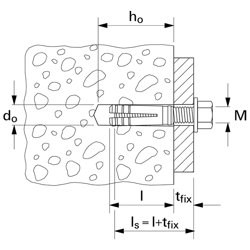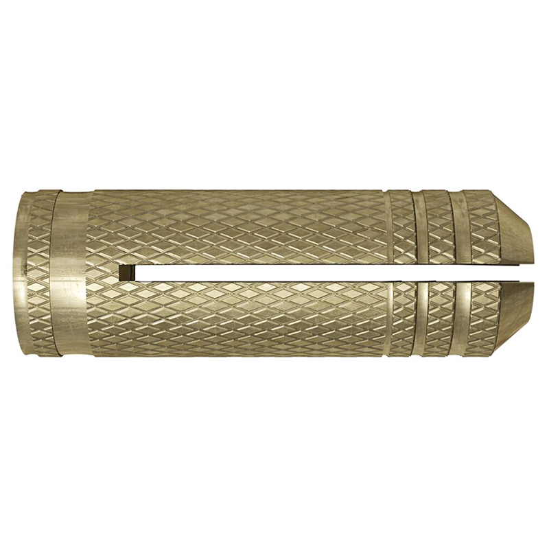der Dübel MS ist ein Spreizdübel aus einer Messinghülse mit einem Messingkonus für die Aufnahme eines metrischen Gewindes, der Spreizdübel ist vor allem geeignet für die Befestigung von Aggregaten, Schaltschränken und Regalen in Beton und Mauerwerk aus Vollbaustoffen, der MS wird in der Vorsteckmontage gesetzt, beim Eindrehen der Schraube oder der Gewindestange spreizt der innen liegende Messingkonus auf und der Dübel verankert sich gegen die Bohrlochwand, die kompakte Bauweise des Messingdübels spart Zeit und Kosten beim Bohren und bei der Montage