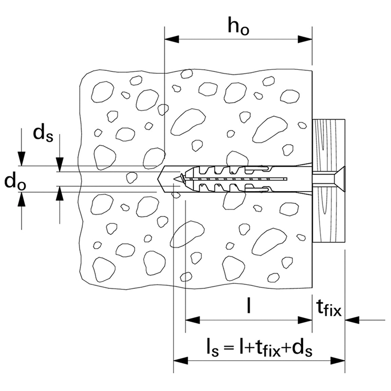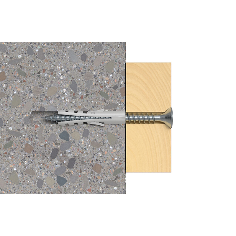 der Spreizdübel S ist das Original, der Kunststoffdübel wird aus hochwertigem Nylon produziert und ist besonders robust, die schlanke Dübelgeometrie erleichtert die Montage, die charakteristischen Verdrehsicherungen verhindern das Mitdrehen des Dübels beim Eindrehen der Schraube, zur Befestigung des Gegenstandes können Holz- oder Spanplattenschrauben verwendet werden, ideal für die Befestigungen von leichten Gegenständen in Beton und Mauerwerk aus Vollstein