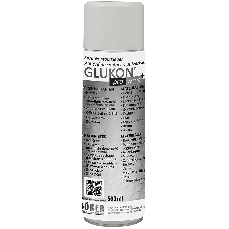 lösungsmittelhaltiger Kontaktklebstoff zum Sprühen, universell einsetzbar, geeignet für harte Materialien, für Verklebungen von Holz- und Holzwerkstoffen, HPL, Stahl, Aluminium, Beton, Kork, Glas, Filz, Papier, Karton, Teppich, Schaumstoffe, fast alle Kunststoffarten, Gummi und Wandverkleidungen, eine Korrektur nach dem Pressen ist nicht mehr möglich
