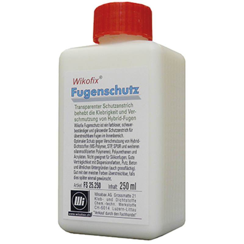 transparenter, schmutzabweisender, scheuerbeständiger und glänzender Schutzanstrich für überstreichbare Fugen im Innenbereich, optimal für MS-Polymer, Polyurethan oder Acryl, auch geeignet für Fassadenfugen, gute Verträglichkeit mit Dispersionsfarben, Putz, Beton und ähnlichen Untergründen, auch grossflächig, ist gut mit den meisten Farben überstreichbar, ca.100 - 150 ml / m2 pro Anstrich, 250 ml reichen für ca. 200 m Fuge