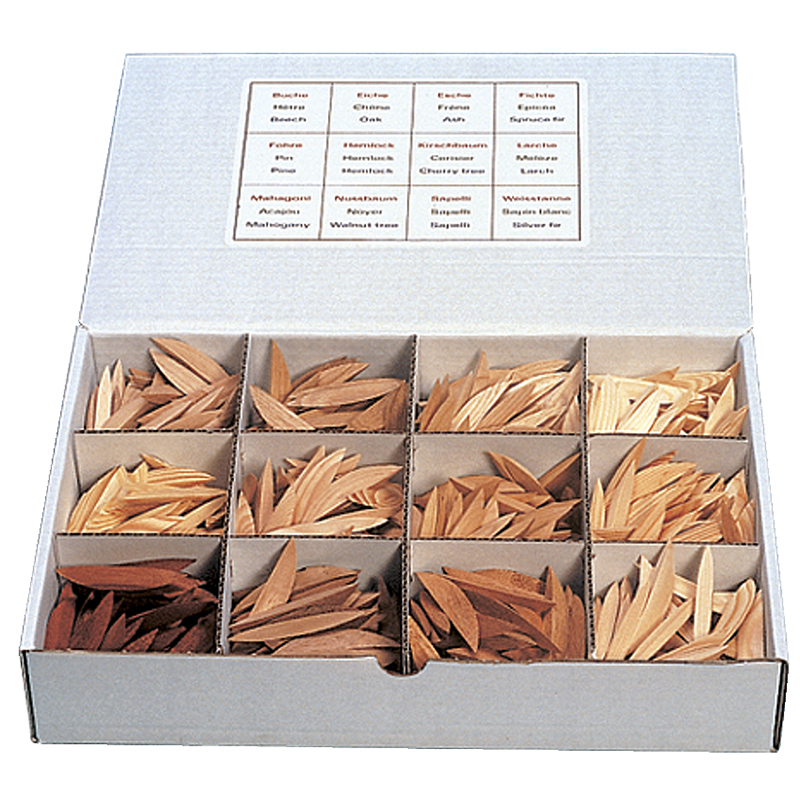 1 Packung enthält je 50 Stück von folgenden 12 Holzarten: