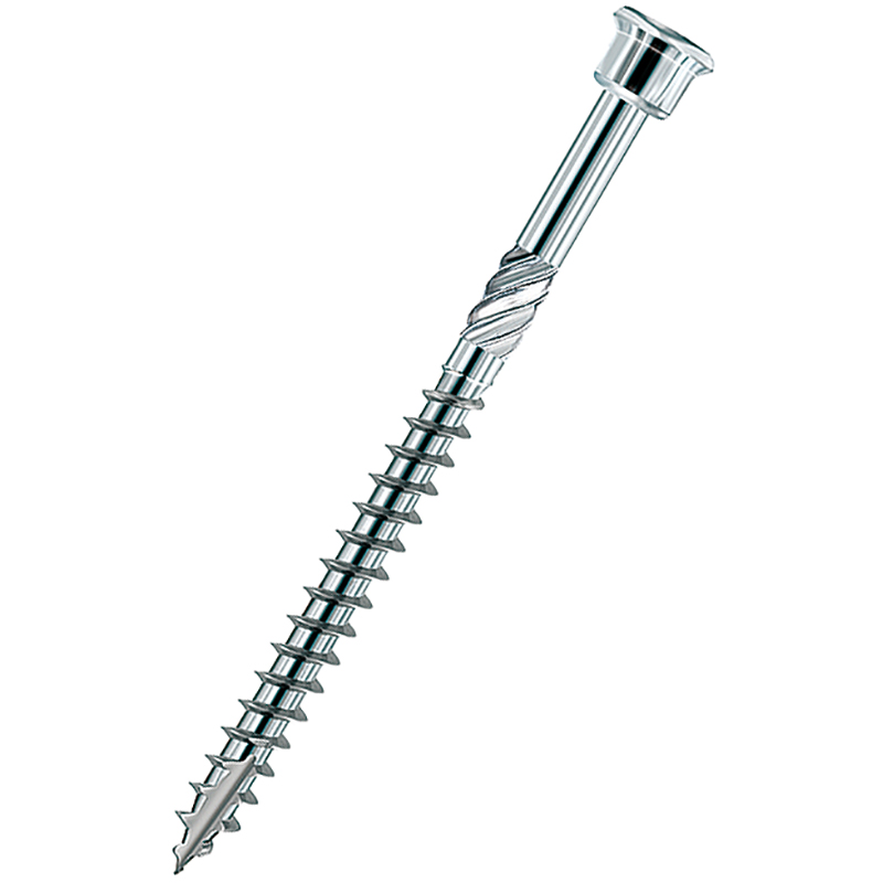 Edelstahl gehärtet, mit Torx, für die Anwendung im Aussenbereich und Garten, mit Fräsrippe für leichtes Versenken in allen Holzarten, Sonderkopf verringert Spanaufstellung, spezielle Schraubensymmetrie verringert Spaltgefahr, Zulassung ETA-11/0024