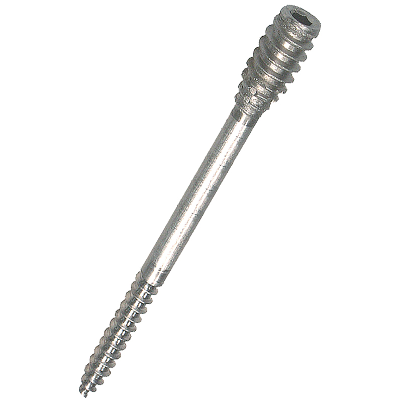 Stahl verzinkt, 2-stufig, mit Innensechskant 4 mm, erste Stufe mit Holzgewinde Ø 6 mm, zweite Stufe mit Holzgewinde Ø 10 mm mit Verankerungsrillen, zum unverrückbaren Verbinden von 2 räumlich getrennten Elementen