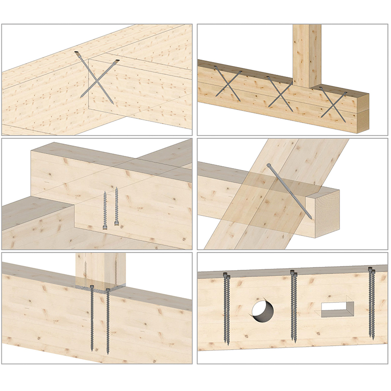 Stahl verzinkt, Zylinderkopf mit Torx-Antrieb, für statische Verstärkungen bei Querschnittschwächungen wie Ausklinkungen und Durchbrüchen, Verbindung bei Aufdoppelungen und Sparren-Pfettenverbindungen, Ableitung von starken Druckkräften, einfaches Versenken im Holz, HECO-TOPIX-Spitze macht Vorbohren überflüssig,