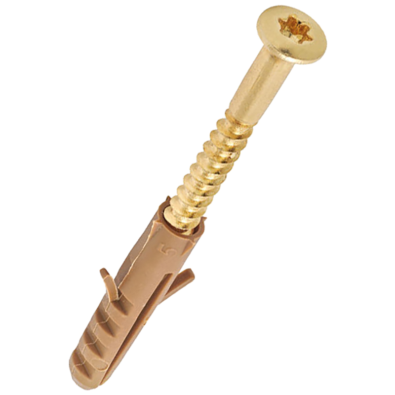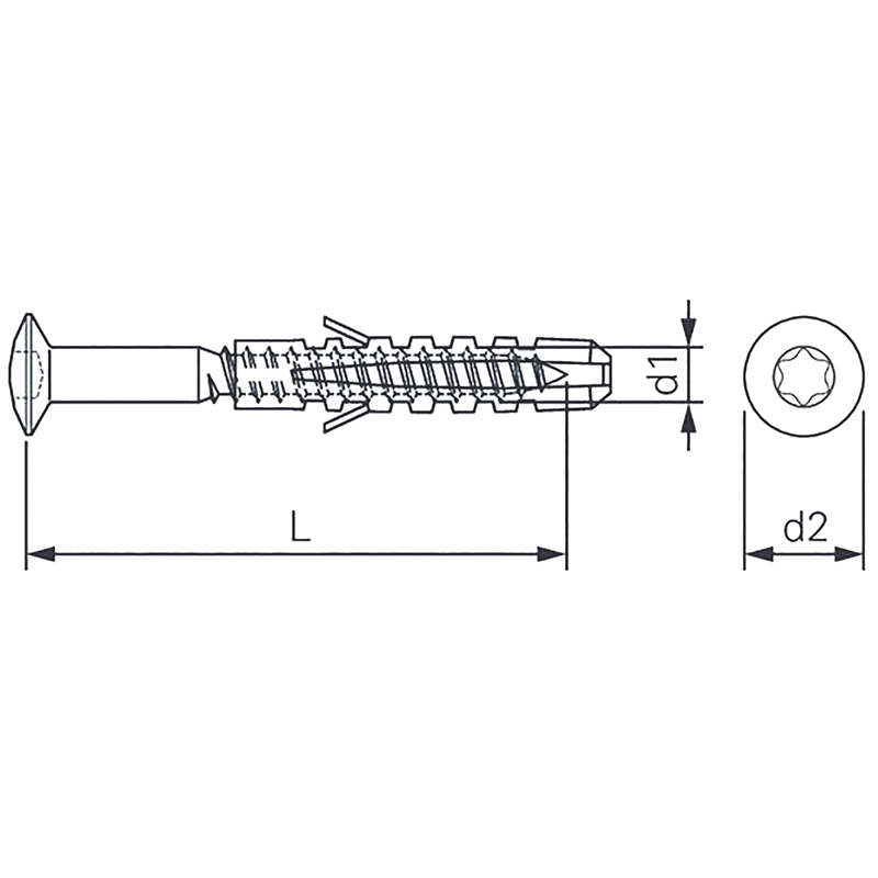 Linsenkopf, Torx, mit Schaft, Stahl gehärtet, mit vormontierten Nylondübeln