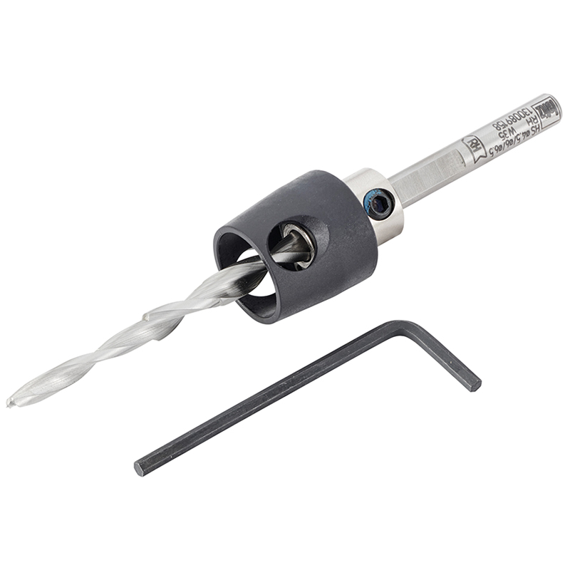 Aufnahme Ø 7mm, optimiert für minimalen Ausriss auf der Ausbruchseite, mit Tiefenanschlag und Gleitbüchse