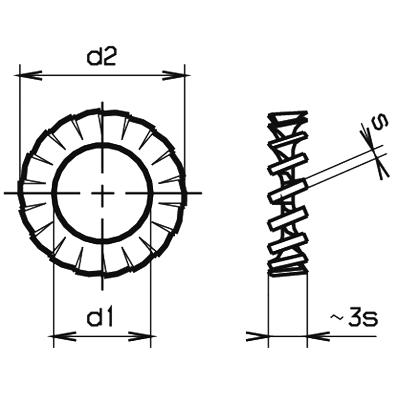 Federstahl verzinkt, Form A, aussen gezahnt, für Schrauben mit metrischem Gewinde
