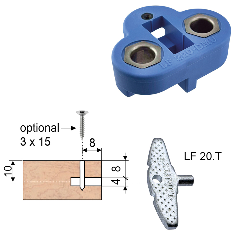 Der LF 20.T5x8 ist ein präziser, verzinkter Tablarträger für hochwertige und unsichtbare Tablarbefestigungen. Er wird mit der Lamellofräse (Einstellung 20) eingenutet und verfügt über einen Zapfen Ø 5 × 8 mm, der exakt in 5-mm-Reihenlochbohrungen passt. Dadurch ist er ideal für Systemmöbel, Regalböden und ästhetisch anspruchsvolle Anwendungen im Innenausbau.