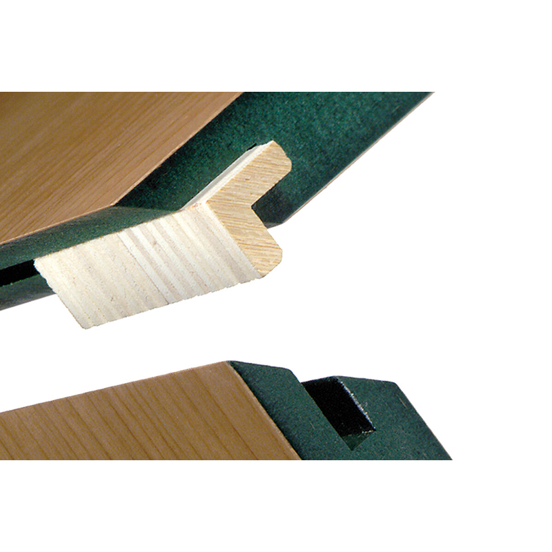 - Meyer-Winkelfedern: Die einfachste, widerstandsfähigste Eckverbindung für sämtliche Gehrungsverleimungen, ohne unsaubere Stirnkanten und quer zum Furnier laufende Anleimer. Einfachste Arbeitsvorgänge: Nut- und Kreissägeblatt genügen. Beste Verbindungsmöglichkeit für Spanplatten. Montage: Federn beim längeren oder schwierigerem zu spannendem Teil einleimen. Kurzer Teil schnell und sicher spannen.