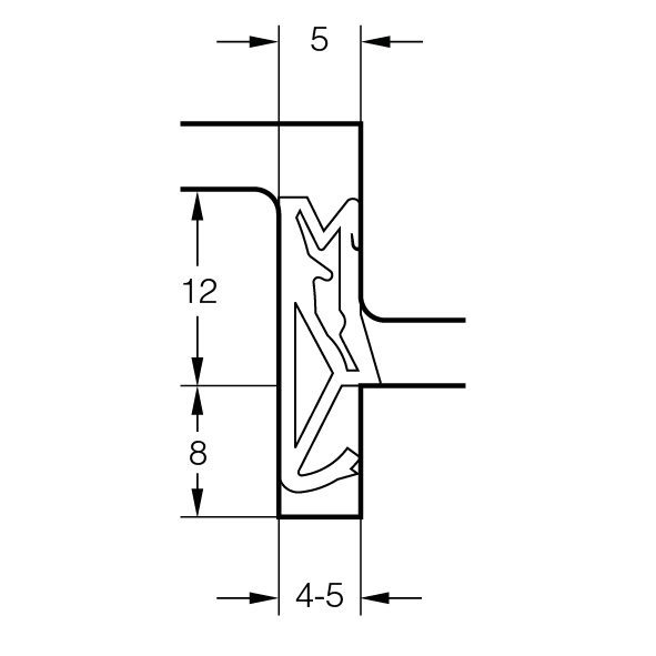 als Flügelfalzdichtung einsetzbar, Anschlagluft 5 mm