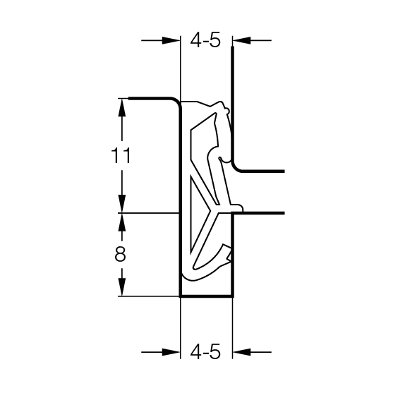 als Flügelfalzdichtung einsetzbar, Anschlagluft 5 mm
