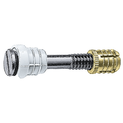 zum Einschlagen, Schraube blau und gelb verzinkt, Gewinde ¼", Flachkopf, Kopfhülsen aus Kunststoff weiss oder braun, Fusshülsen aus Messing