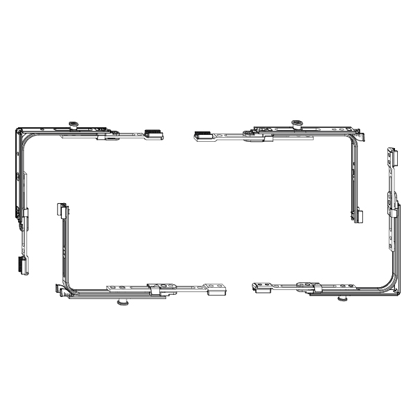 - 2 Eckumlenkungen senkrecht mit 1 i.S. mit Zahnkasten
