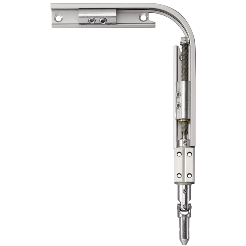 Eckumlenkung mit integriertem Getriebe, verzinkt, Anschluss waagrecht für Rundstange Ø 12 mm, Anschluss senkrecht für feste oder abnehmbare Kurbelstange, schmale Bauweise, verdeckte Montage durch Abdeckprofile, für vertikal eingebaute Rechteckfenster mit Kippflügel einwärts,