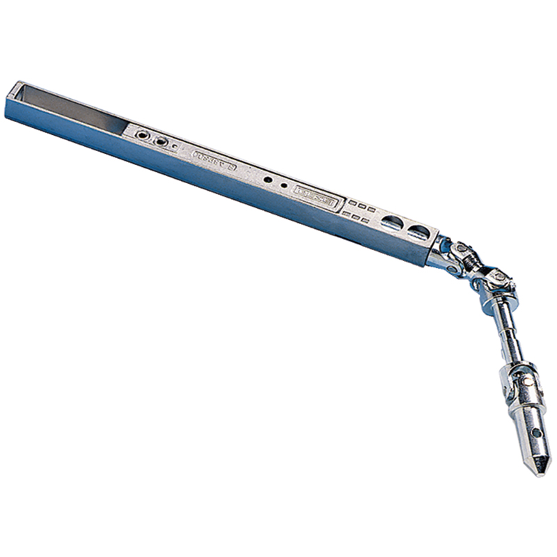 silberfarbig, Anschluss oben für Rundstange Ø 8 mm, Anschluss unten für feste oder abnehmbare Kurbelstange, links und rechts verwendbar, schmale Bauweise, verdeckte Montage durch Abdeckprofile, für vertikal eingebaute Schräg- und Dreieckfenster mit Kipp- und Klappflügel einwärts,