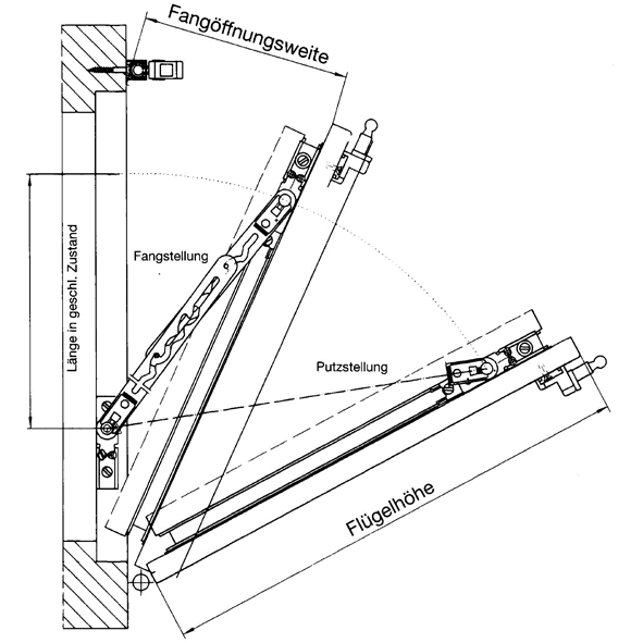 Stahl verzinkt, für vertikal eingebaute Rechteckfenster als Kippflügel mit