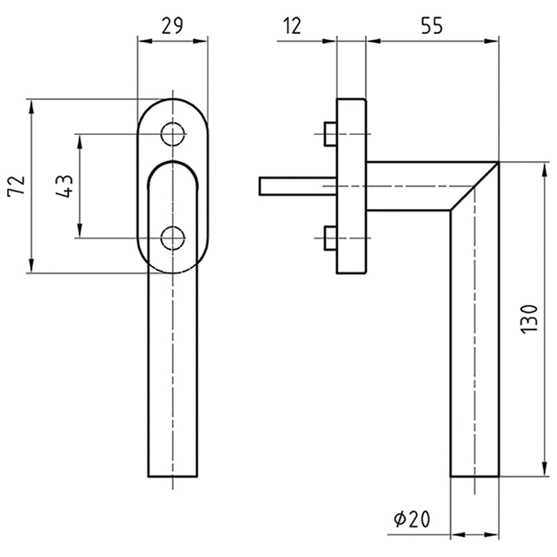 - Für paarweise Montage werden 2 Fenstergriffe 06.001.58 und Drückerstift 09.606.11 benötigt.