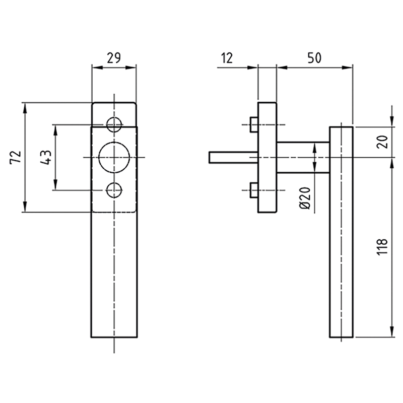 - Fenstergriff für paarweise Montage ab Werk.