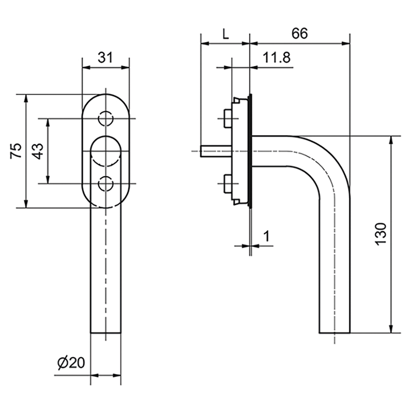 für Drehgriffe und Zylinderrosetten mit durchgehender Befestigung