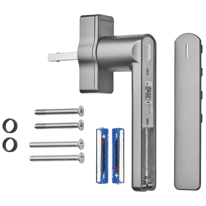 Montage analog zu manuellem Fenstergriff, einlernen via QR-Code per Bluetooth, batteriebetrieben, variable Vierkantlänge (32 - 42 mm)