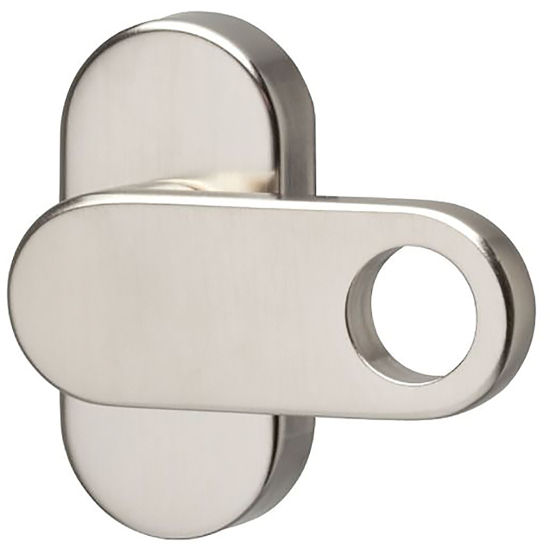 Messing geschliffen matt vernickelt, mit Rasterung 90°, Befestigung verdeckt für Gewindeschrauben M5, Griffloch mit Ø 16 mm für Bedienungshebel, ohne Schrauben
