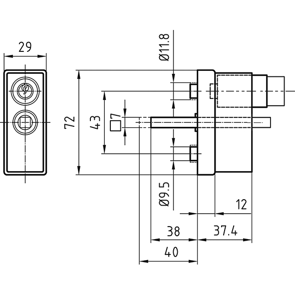 für Drücker-Lochteile mit Ansatz 16 mm und Vierkantloch 8 mm,
