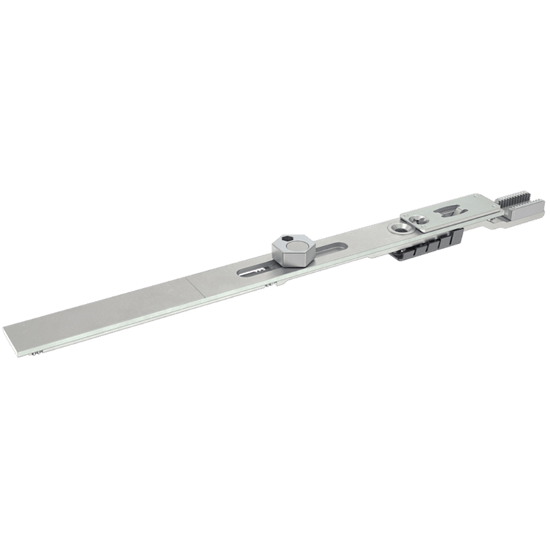 silberfarbig, mittenfixiert, Stulpbreite 16 mm, einseitig mit Feinzahnkupplung, anderseitig mit Feinzahnung, kürzbar 65 mm, mit Magnetzapfen (nicht als verriegelungsstelle geeignet), Anbau an Umlenkung VSU, VSO oder BSO/K3