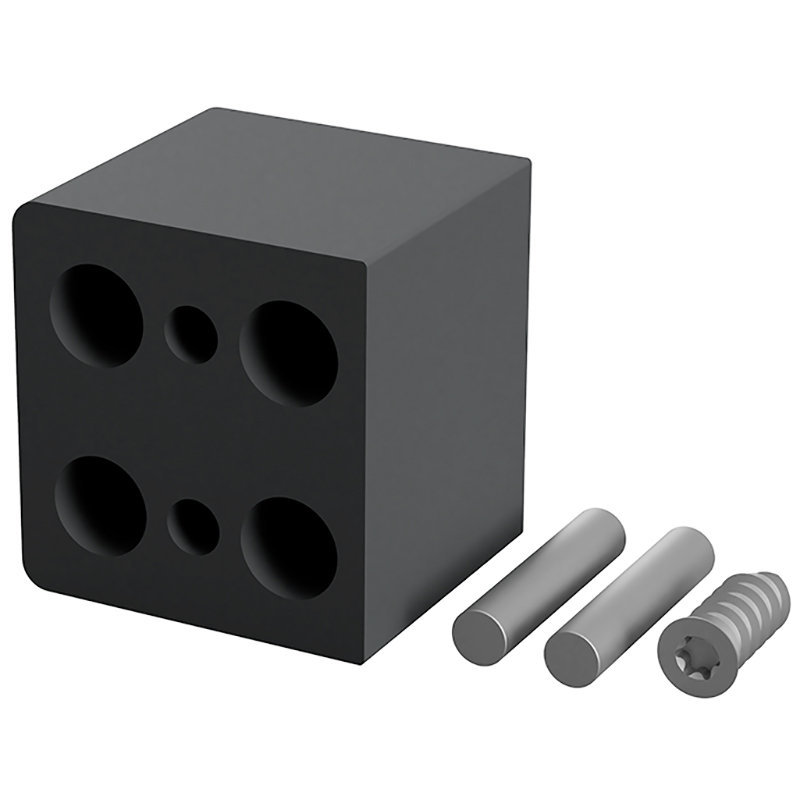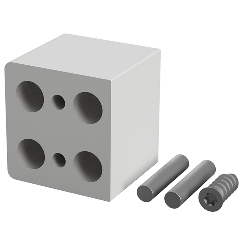 Im Set sind zwei Tablarstifte und eine Euroschraube für die Montage der Korpusschiene enthalten, die Euroschrauben für die Montage des DistaCubes am Möbel sind nicht enthalten