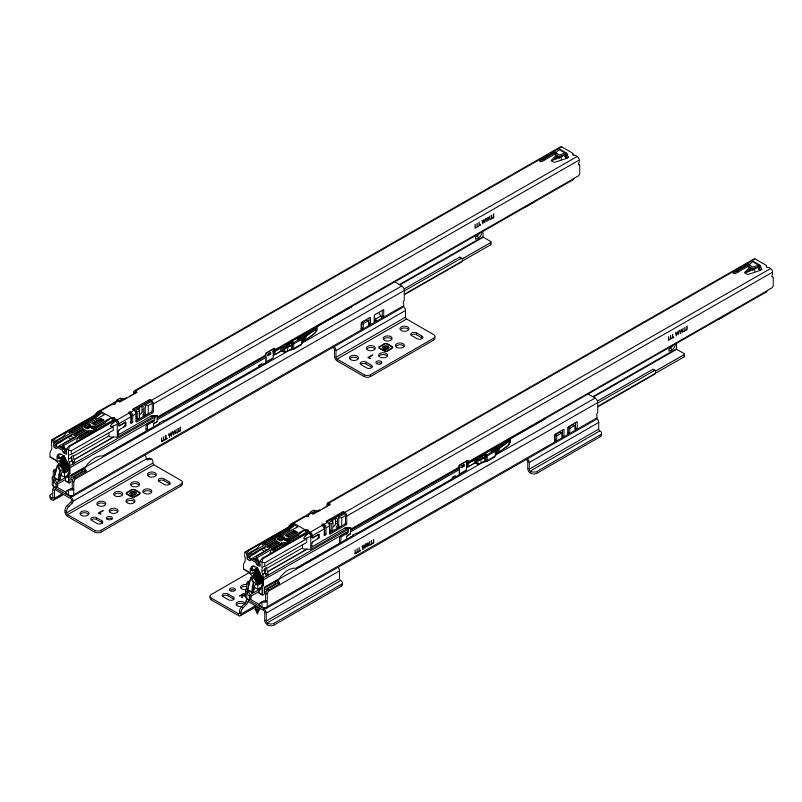 Montage am Korpus- oder Zwischenboden, Vollauszug synchronisiert, Tragkraft 70 kg, mit Soft-close Dämpfungssystem, exzellente Laufeigenschaften, für alle Nova Pro Zargen geeignet, Tipmatic Soft-close kompatibel, ohne Tipmatic Soft-close Aktivator, ohne Dekorteil, ohne Zubehör