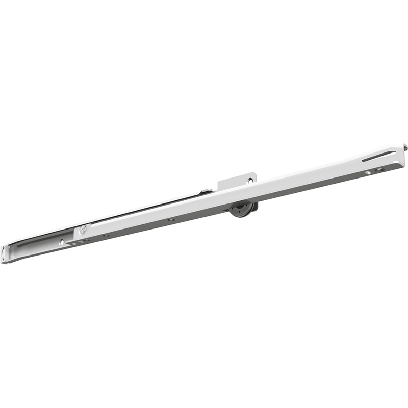 Stahl weiss beschichtet RAL 9010, seitenstabil, für aufliegende Montage, Tragkraft dynamisch bis 70 Kilo geräuscharme Präzisionslaufrollen, Arretierungsfunktion im ausgezogenen Zustand durch Doppelkerbe im Schubladenprofil, Selbsteinlauf durch spezielle Profilform, rechtsseitig zwangsgeführt